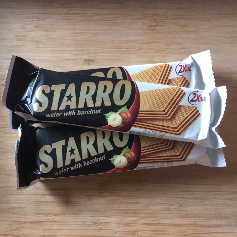 將層層疊起的威化餅乾瘋迷世界各國已久,STARRO威化餅乾長度十七公分一包有兩條。只要銅板價格十元,平均一條只要五元價格。這種餅乾一天的五餐(三餐、下午茶、消夜)都很適合來吃。
