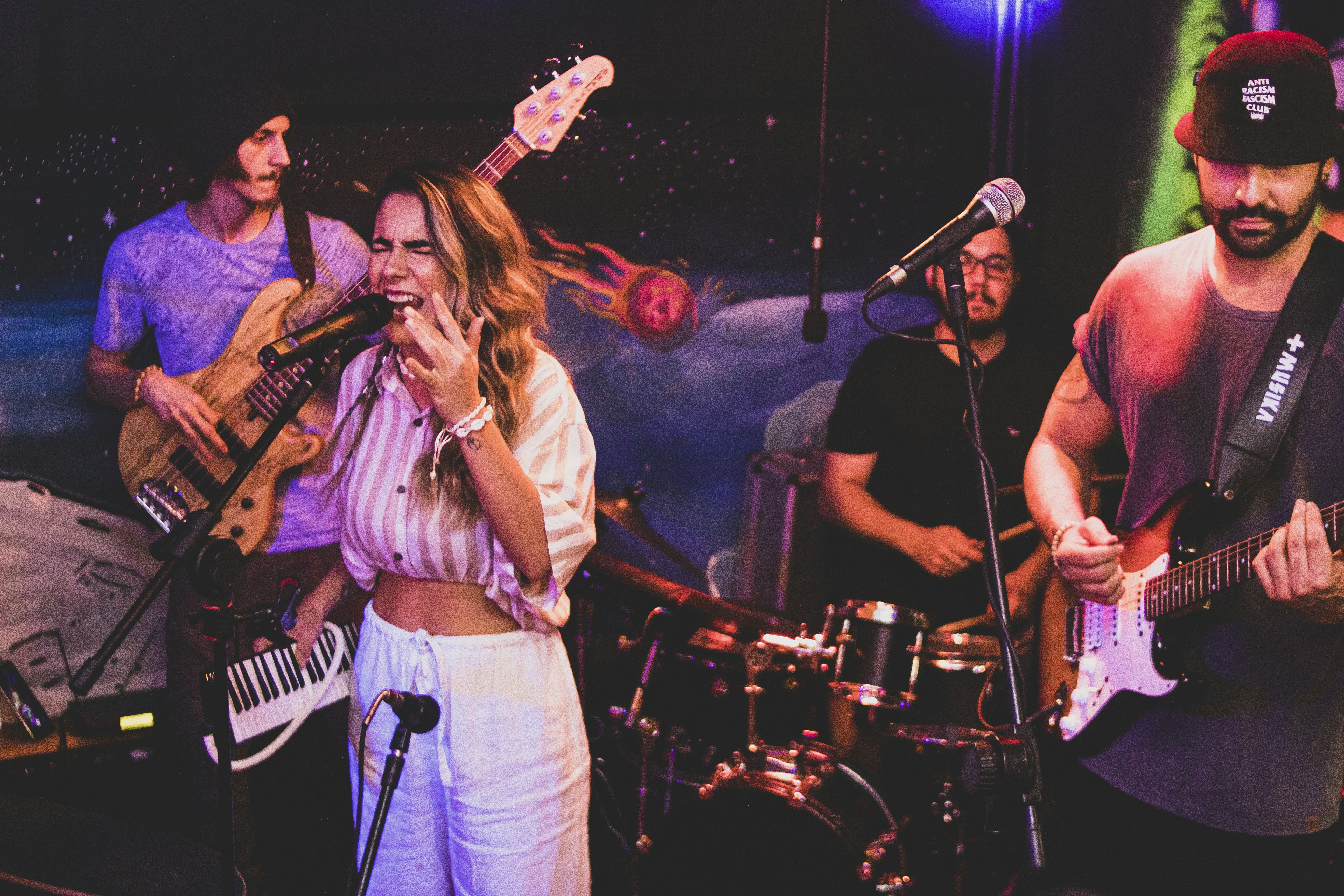 除了人聲之外,吉他、貝斯、鼓,還有鋼琴、電子琴、合成器等鍵盤樂器(功能上和吉他類似),是樂團式編曲中最常見的樂器配置,無論風格是流行、搖滾或R&B,其中鍵盤樂器由於用途太過廣泛且音色多樣,這次暫且略過,請先認識鼓、貝斯和吉他吧。