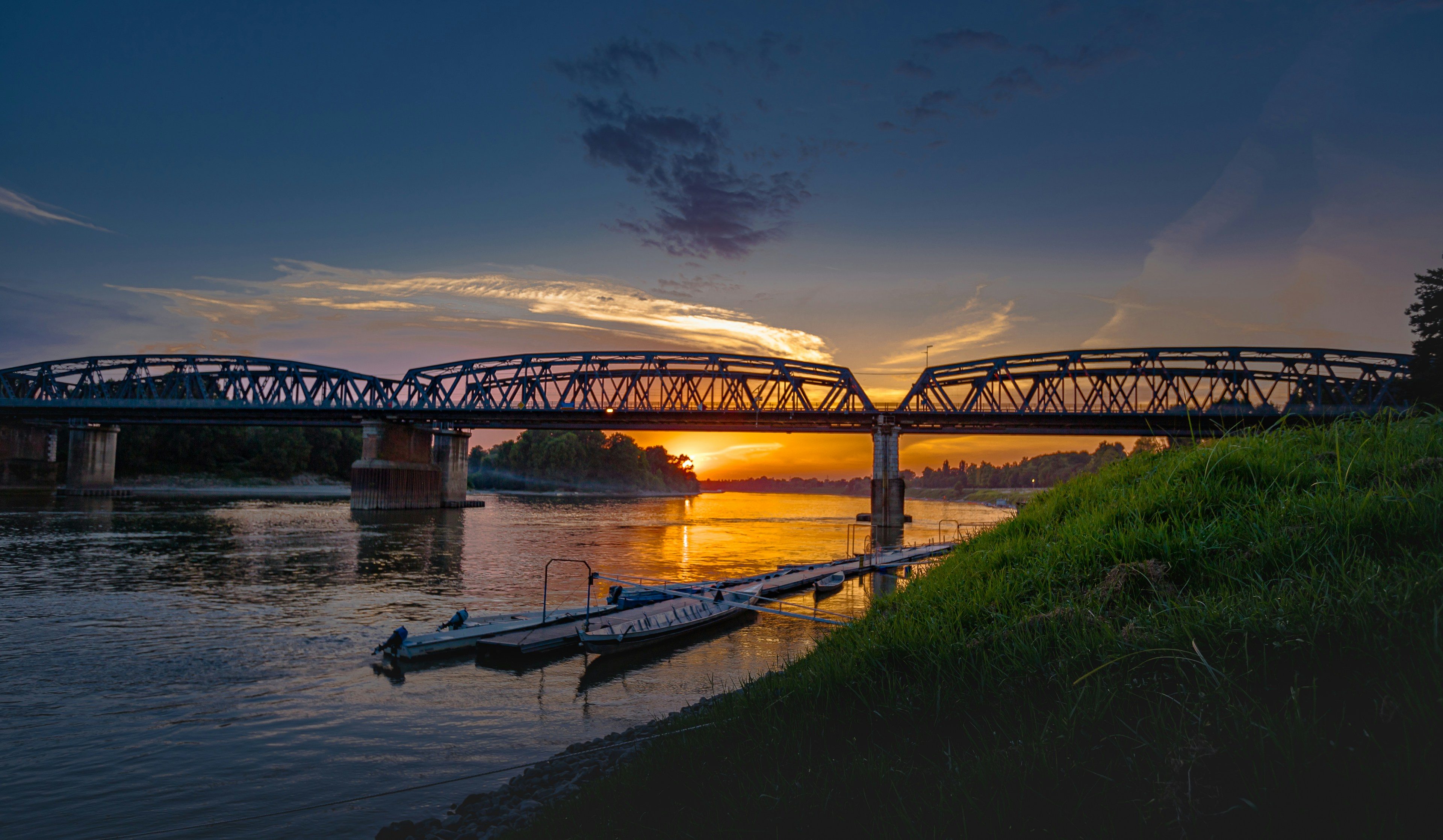 橘黃色的夕陽映在河面上,