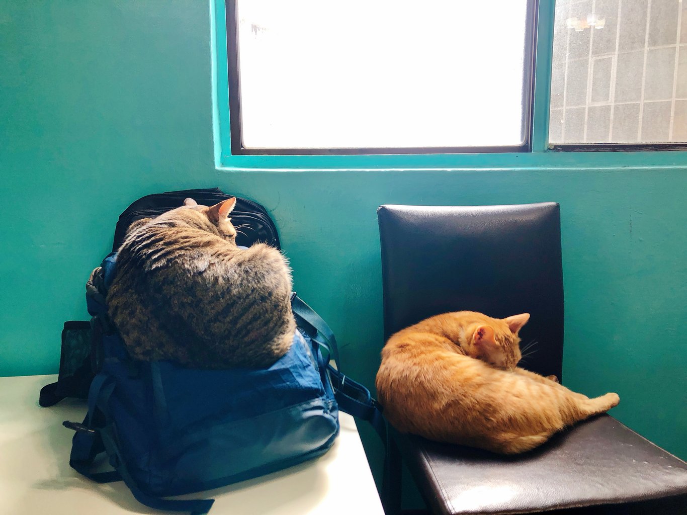 ⇩ 起床氣|橘貓難得不胖,黑貓一臉厭世。