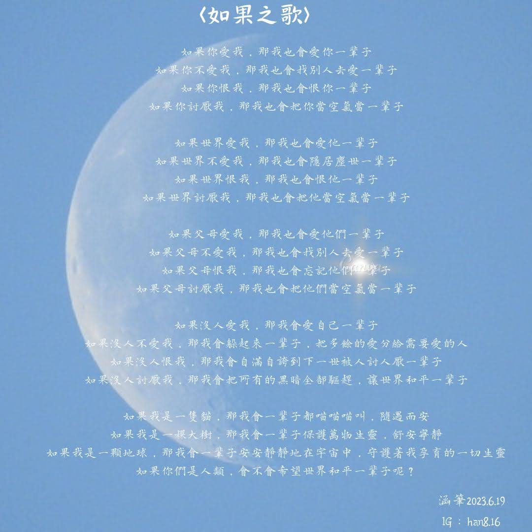 如果我是一顆地球,那我會一輩子安安靜靜地在宇宙中,守護著我孕育的一切生靈