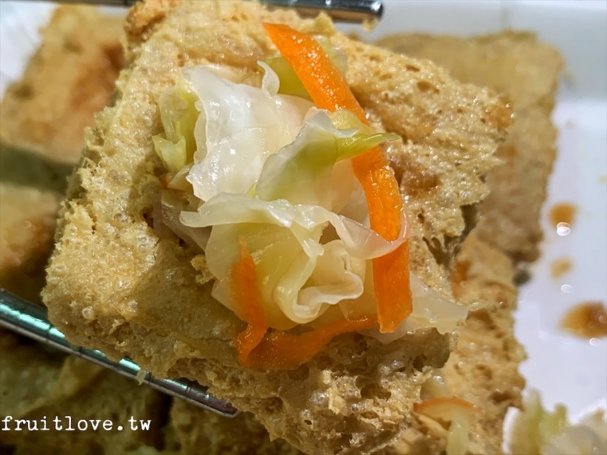 吃第一口被外皮的酥脆有驚豔到,外皮有夠酥,酥的口感有點像炸豆皮那種酥,跟我吃過的臭豆腐酥感真的很不一樣,很喜歡這種酥脆感