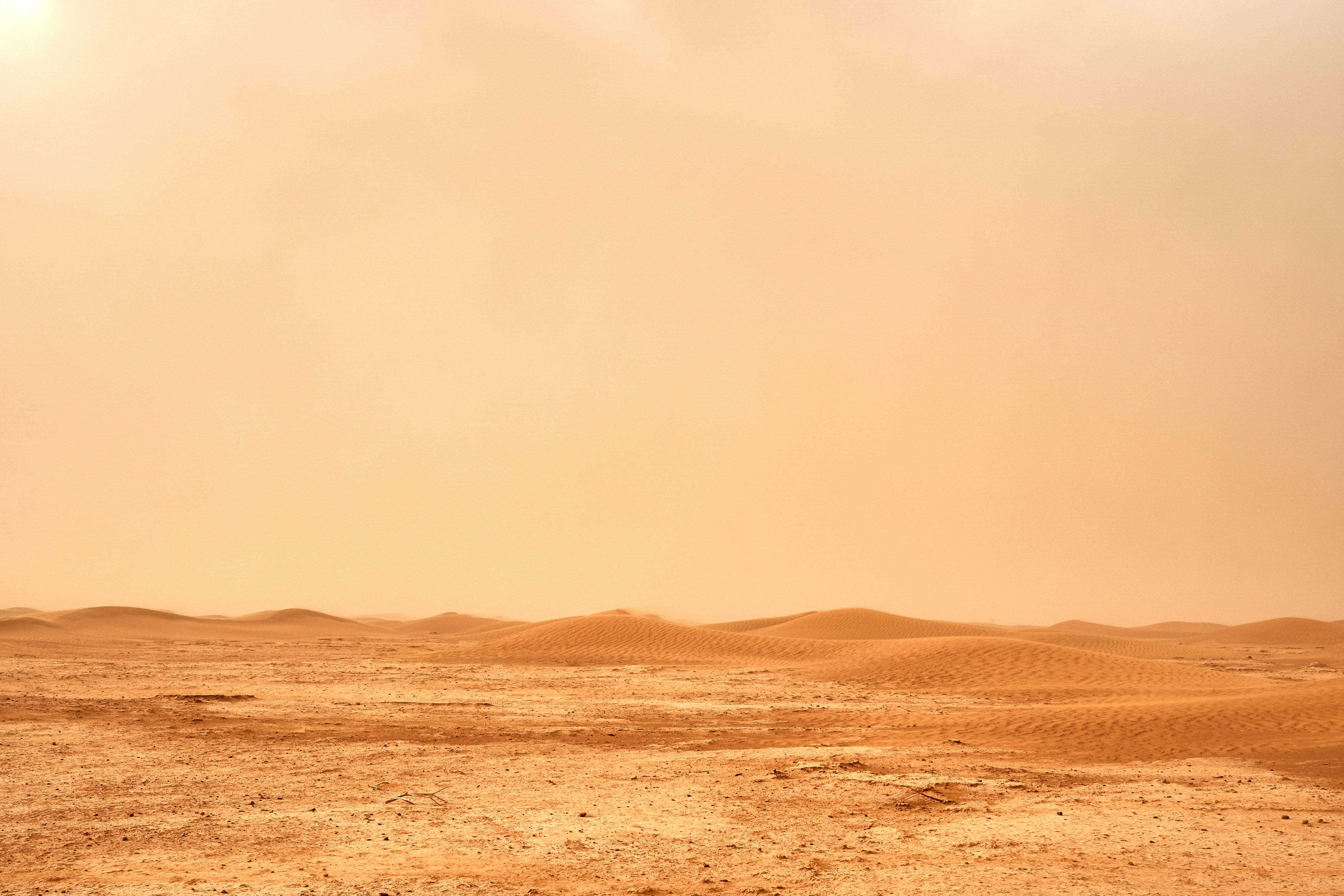 一陣狂風,突然莫名地襲來,伴隨著令人不寒而慄呼嘯聲,強烈的氣流甚至將沙塵攏起數座豎天的龍捲。連天空的顏色都已被塵暴淹沒之時,瞬時之間,停了下來。