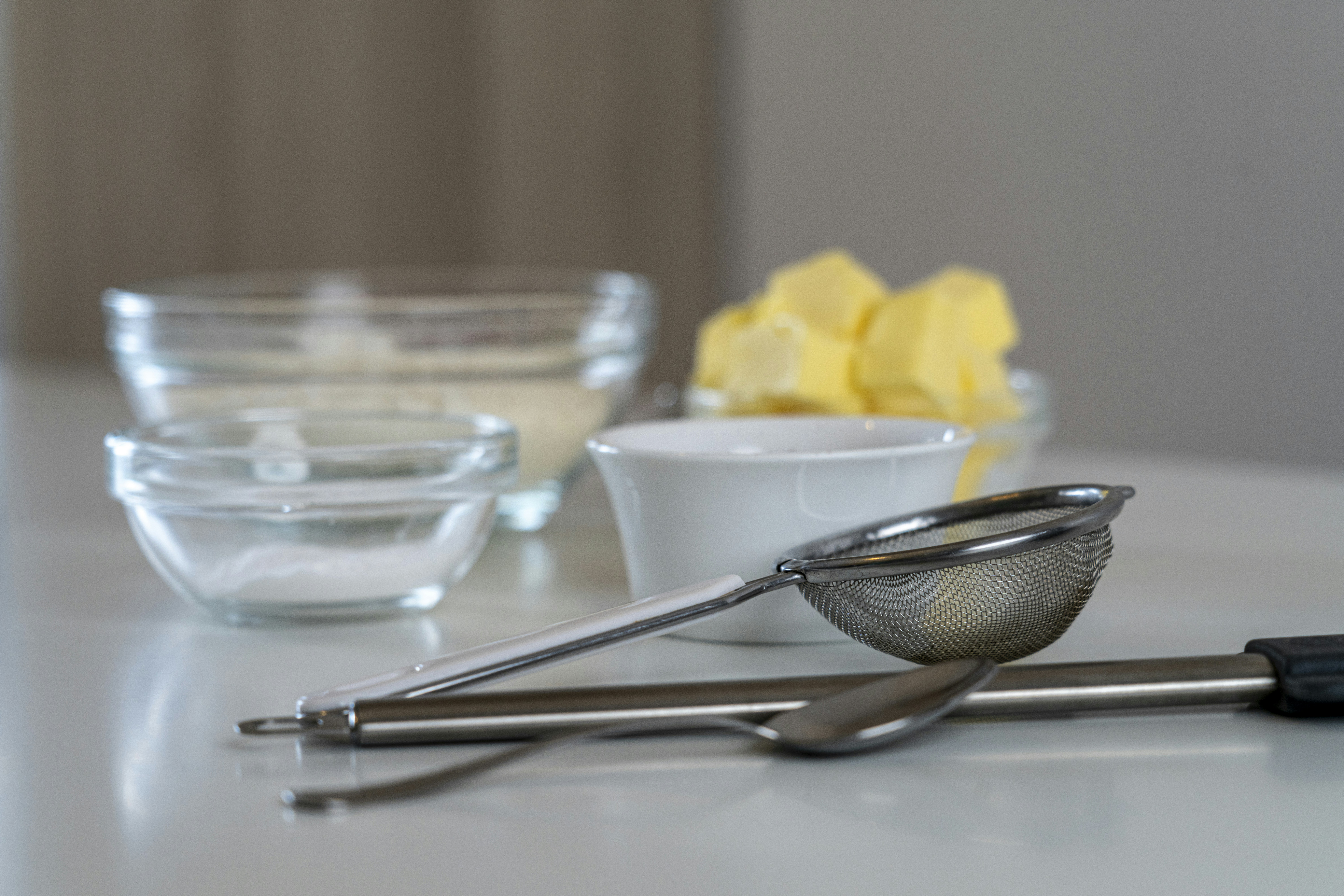 篩網(麵粉篩)是非常重要的!在烘焙當中,大部分的粉類都需要過篩,避免結塊。