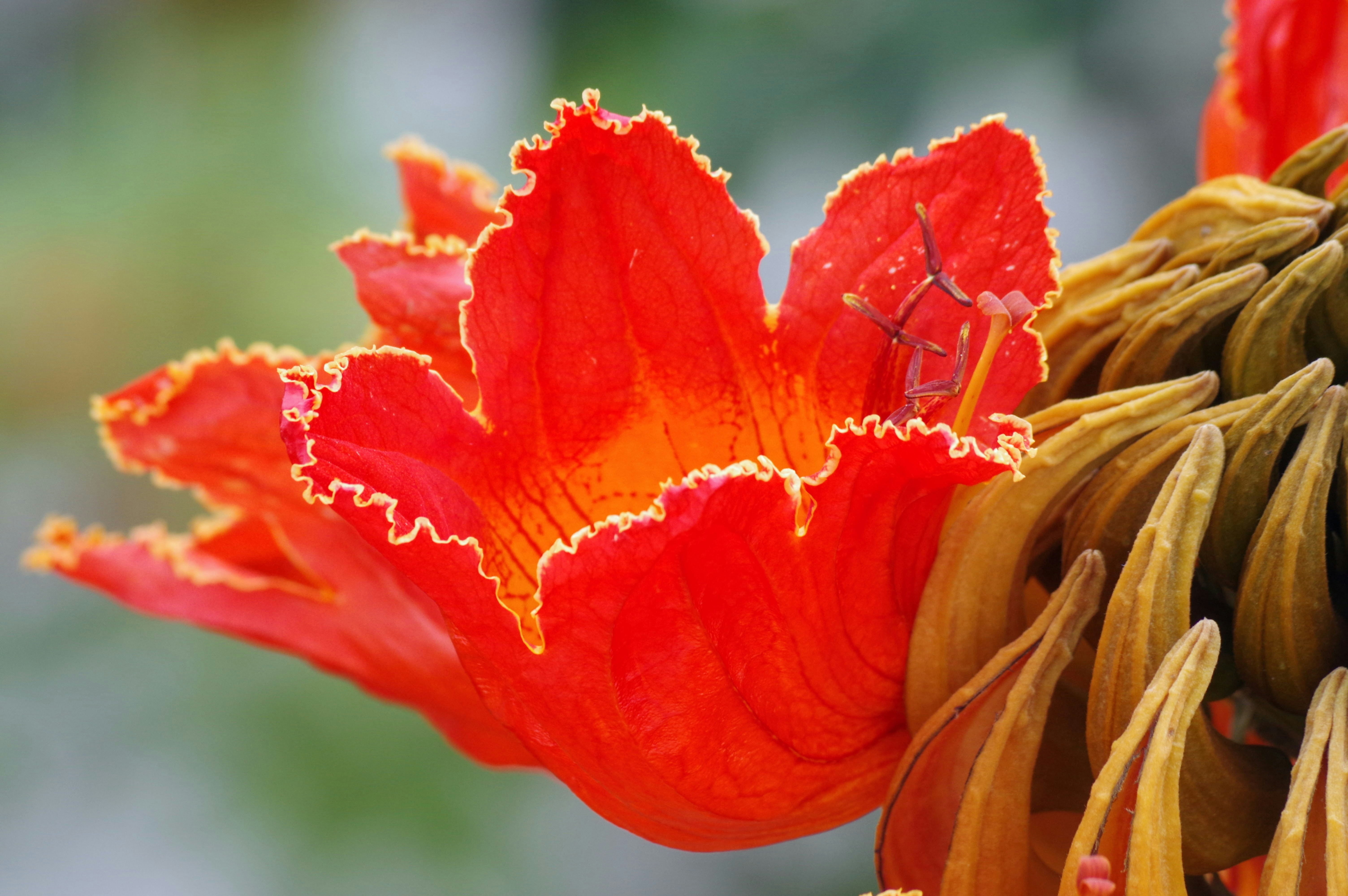 發現一個有意思的問題,在網路上搜尋火焰木的花期,搜尋結果在春季、夏季、秋季、冬季都有。在手邊的書(景觀樹木賞花圖鑑/晨星出版)上記載花期是春末至冬初,盛花期是夏季5-7月。這就很奇怪了~火焰木在台灣的花期到底在什麼時候?