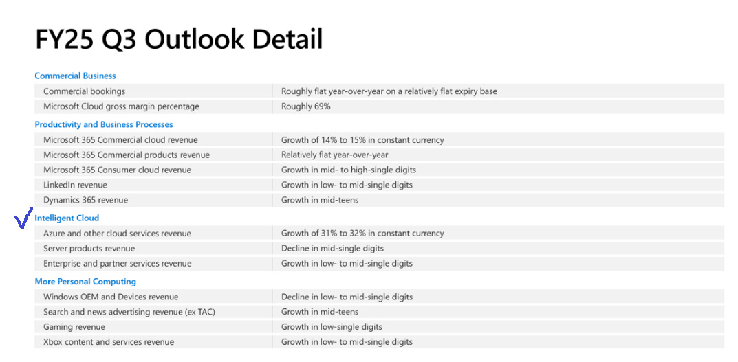 首先, 先來看一下MSFT上季對這季的展望. 尤其, 我會把焦點放在雲端業務上, 因為這是成長主力, 也是眾多投資人與分析師關注的焦點.