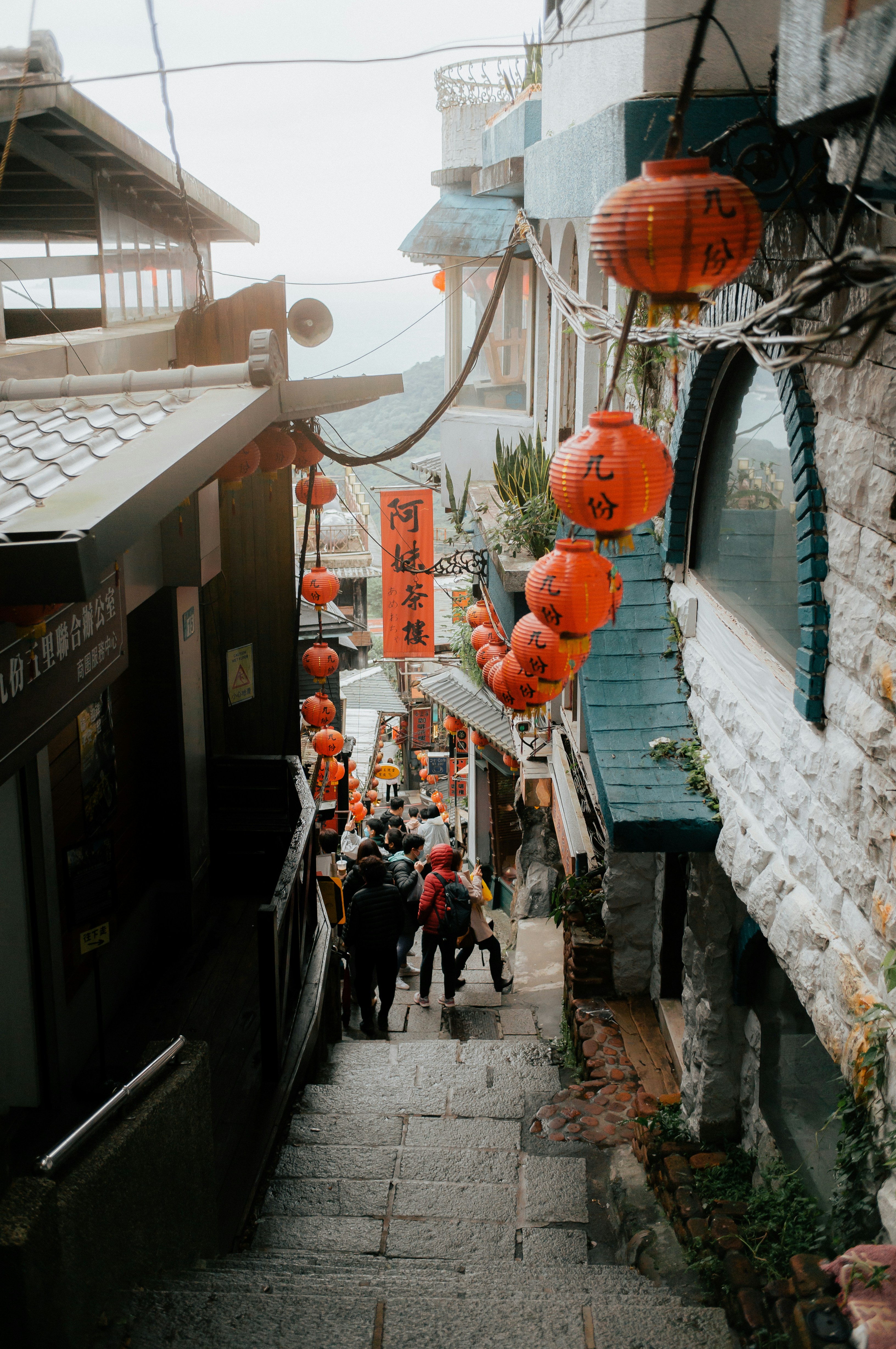 到九份老街攏總70分鐘,遊客猶無真濟。老街行行一下,買一雙柴做的箸,看著素食肉圓,食一粒肉圓佮綜合湯。老街行煞,倒轉來,佇一間咖啡館啉咖啡,閣食一份沙拉佮鹹派,才有一點仔飽。