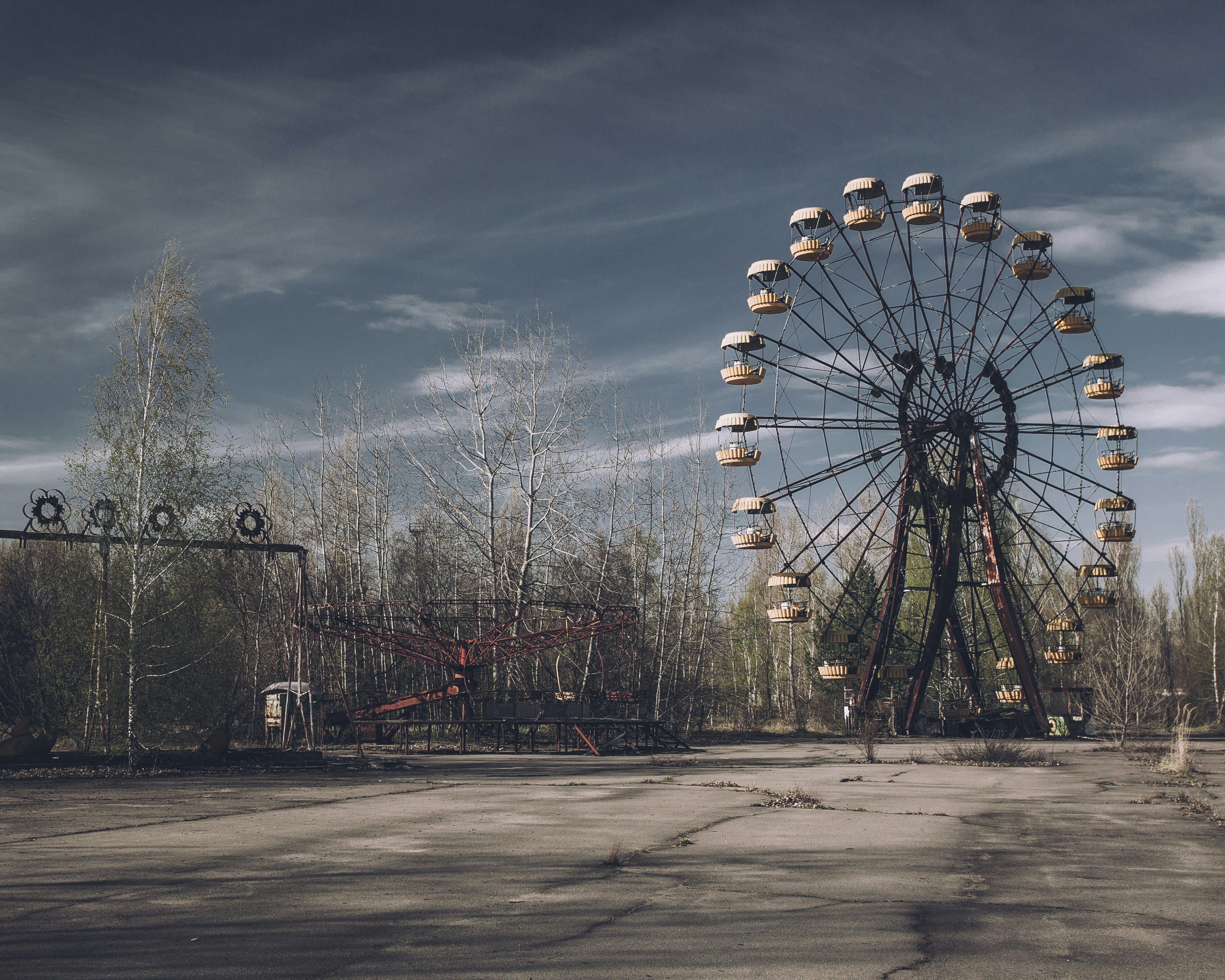 不過建物實在太大,晚上無法看清全貌。大夥兒就繼續前進,接下來看到的是海盜船。也有人說故障的是海盜船,不過現場看起來倒是沒什麼特殊之處,此時一陣風吹過,機械設施被吹得嘎嘎作響,甚至有些晃動,令人戰慄。不知道是腎上腺素消退,還是陣風過於強烈,大家感到有些寒冷,有些人還起了雞皮疙瘩。