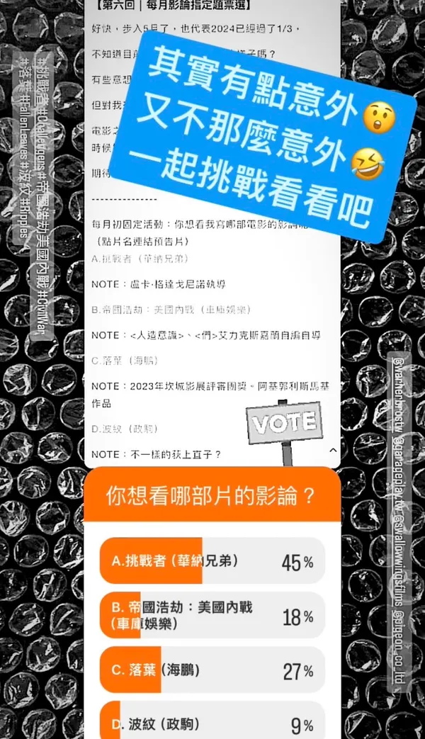 【第六回│每月影論指定題票選】