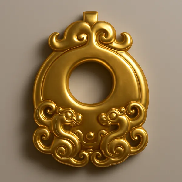 Prompt: 生成1個3D中國敦煌吉祥玉佩紋藝術化表達,金絲框,由圓潤光滑的玉石材質製成,具有精緻光澤,排列在淡灰色背景上。 工具:Copilot