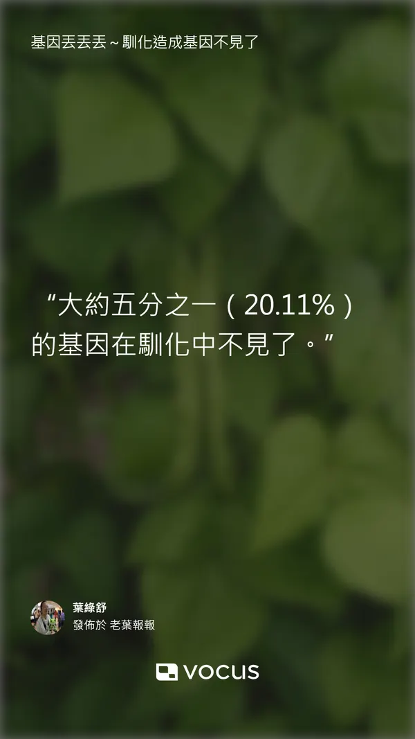 基因丟丟丟~馴化造成基因不見了