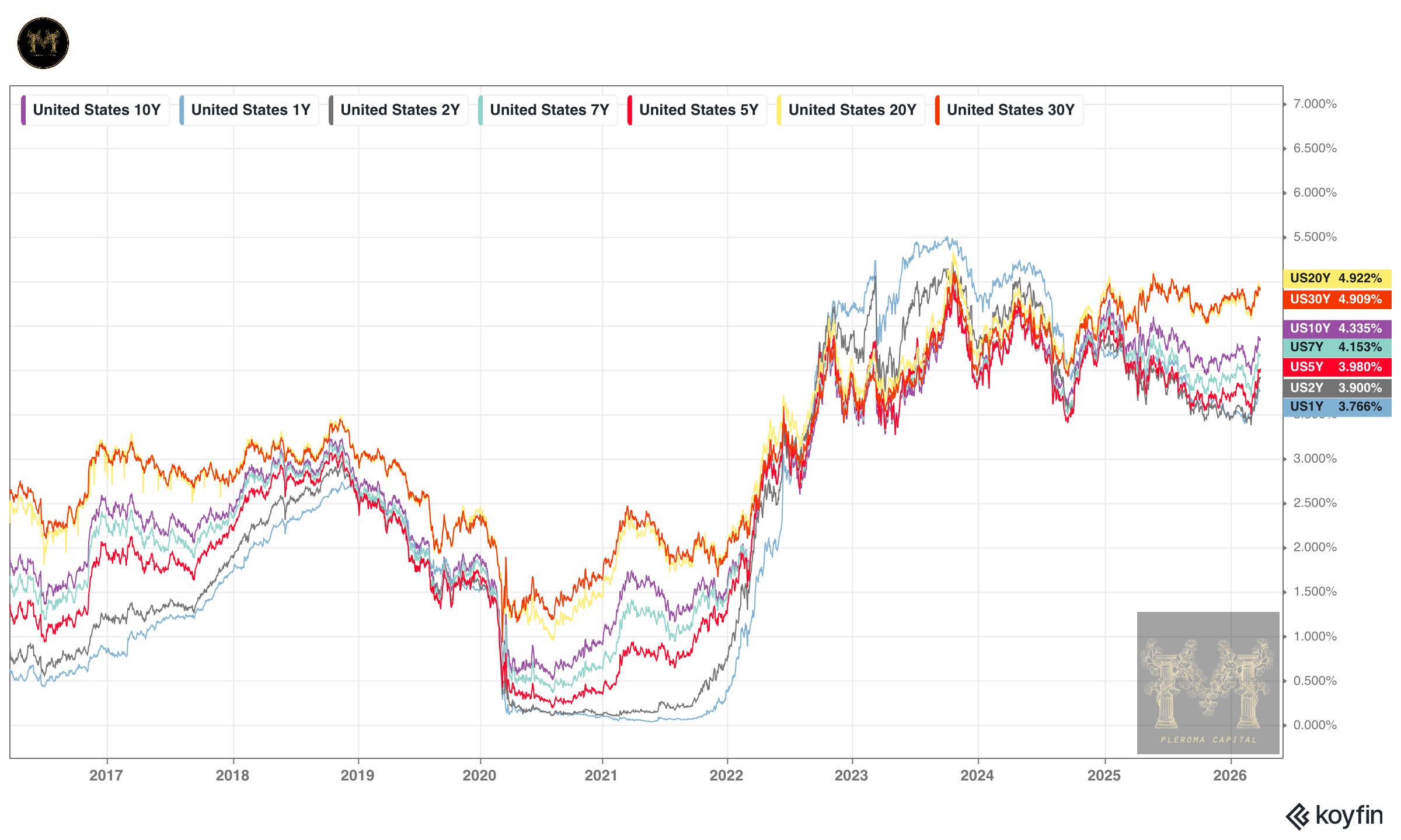 從這張時間跨度為1年的同一張圖,可以看到自美、以轟炸伊朗開始,市場的反應就是很積極的把通膨預期往上修正,雖然中途有兩次某人試圖操控10年期美國公債(不宜在公開場合談論,或許可在Discord會員群提及),但這件事情本身就是不可能的任務。前幾天的短債市場甚至把4月份聯準會升息的機率給到了20%! 請記得:所有的估值最終都必需面對利率的重新校正——長期投資的聰明錢已經開始調整配置了,而短期交易的人則必需緊盯原油和利率市場給你的最新暗示。